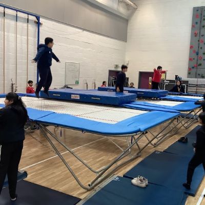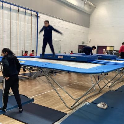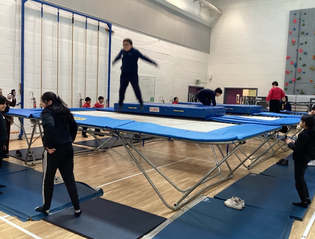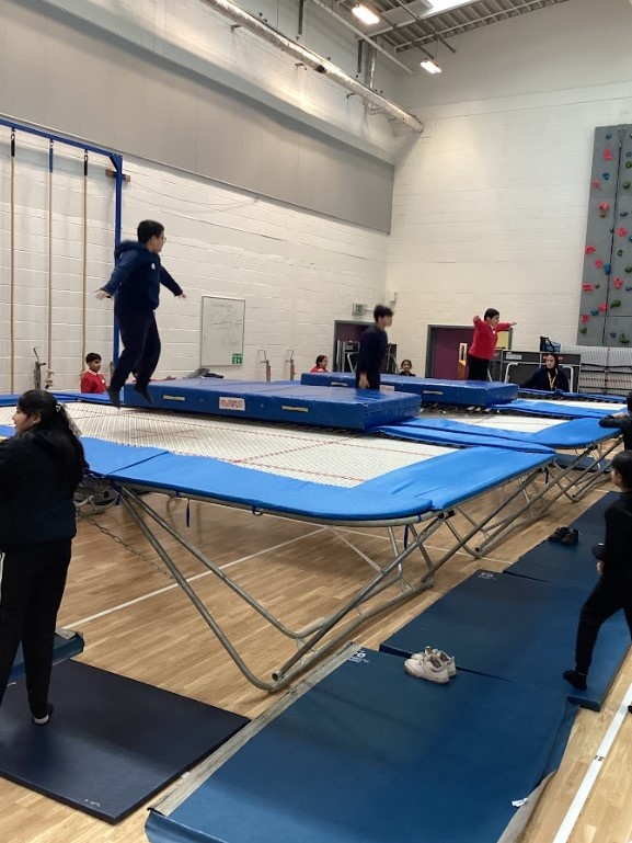 The excitement continued in the sports hall, where the group tried their hand at trampolining. This was a completely new experience for the pupils, and they tackled it with amazing energy. They supported one another as they learned how to balance and move in a whole new way.