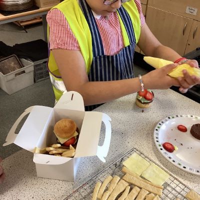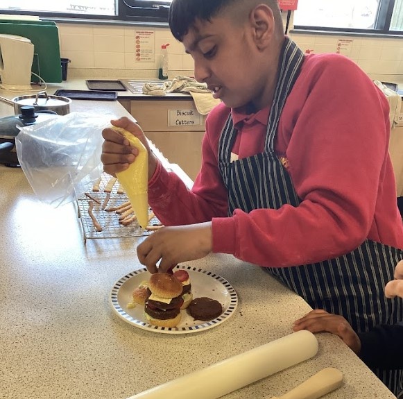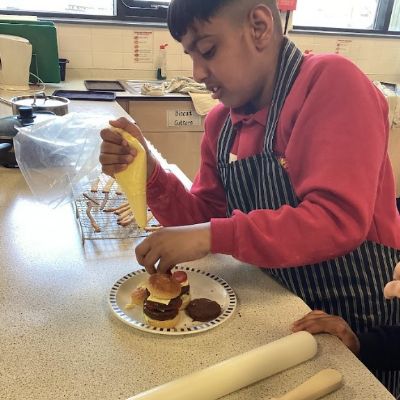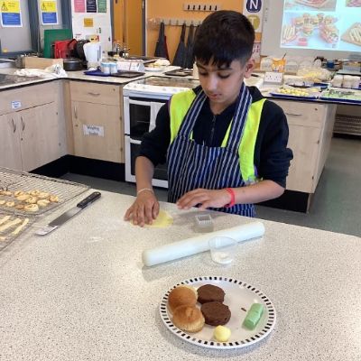 The pupils fully immersed themselves in two brand-new challenges. In the kitchen, they got stuck into a "sweet burger" making session. For many, this was their first time using a secondary school Food Tech room. They worked brilliantly, learning how to handle ingredients and follow a recipe to create something fun and unique.