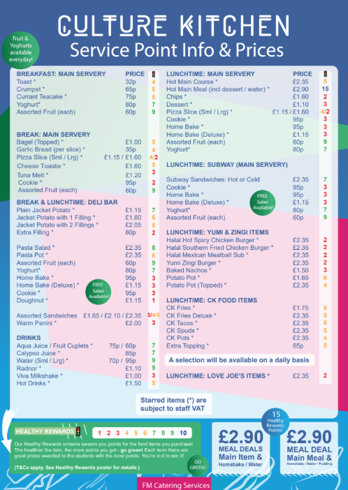 Lunches - Menu and Price List