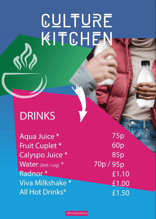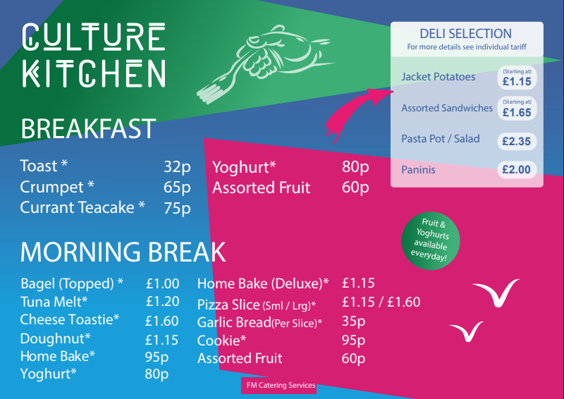 In the atrium, you’ll find our main dining room. It’s open at break and lunchtime, serving a range of hot and cold snacks, meals and drinks.